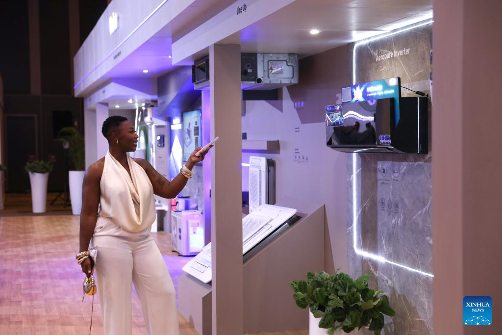 A woman tries products at Haier's launching event in Johannesburg, South Africa, Feb. 2, 2026. China's home appliance giant Haier on Monday held a launch ceremony in Johannesburg, South Africa's economic hub, marking its official entry into the South African market. (Xinhua/Chen Wei)