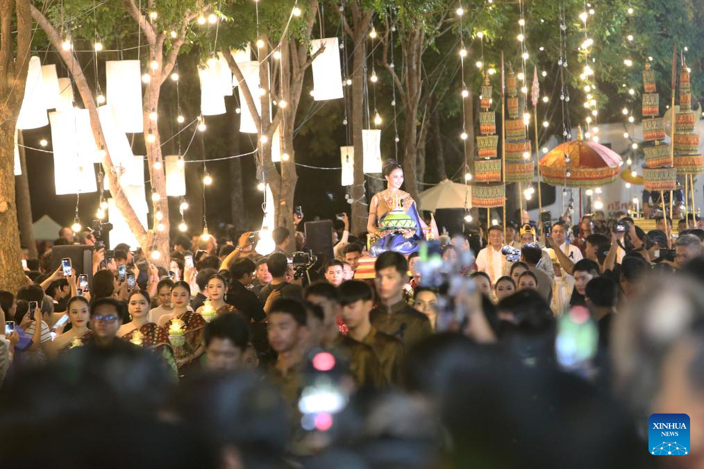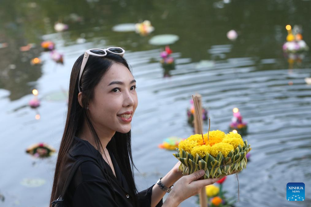 People attend the Loy Krathong Festival in Ayutthaya, Thailand, Nov. 5, 2025. Thailand celebrated the traditional Loy Krathong Festival on Wednesday. (Xinhua/Rachen Sageamsak)