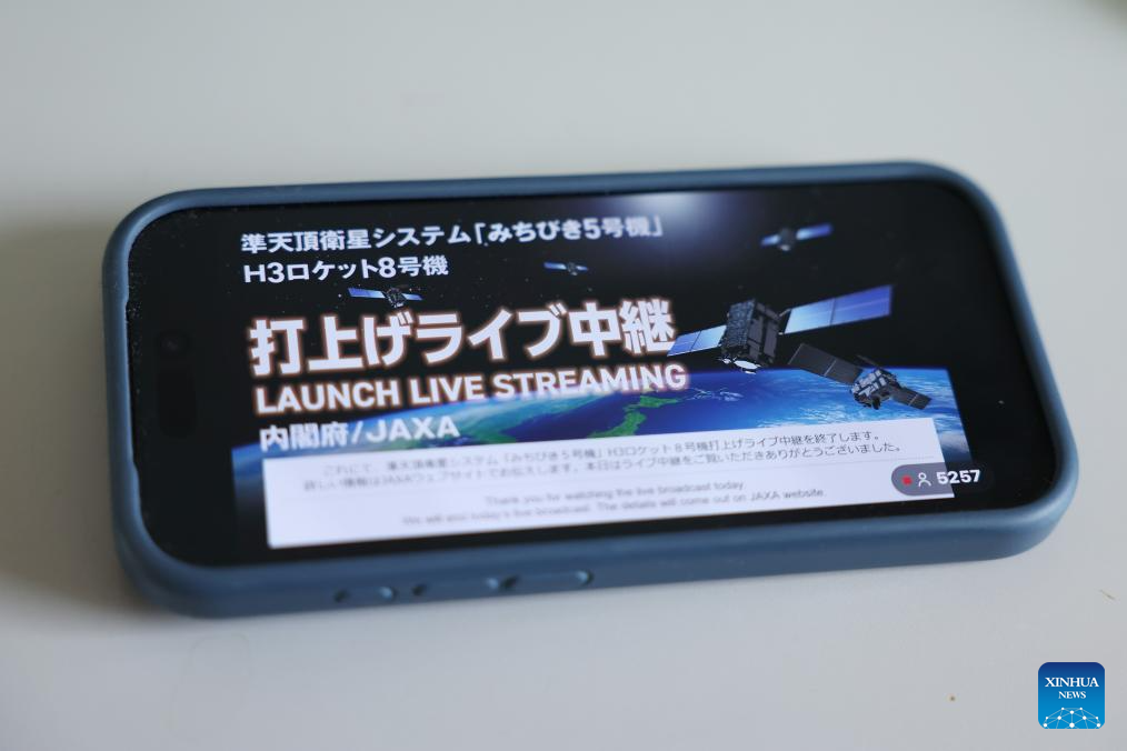 A cellphone screen showing the live broadcast of the launch of Japan's H3 rocket is pictured in Tokyo, Japan, Dec. 22, 2025. Japan Aerospace Exploration Agency launched an H3 rocket on Monday morning, but the second-stage engine ceased combustion prematurely. (Xinhua/Jia Haocheng)