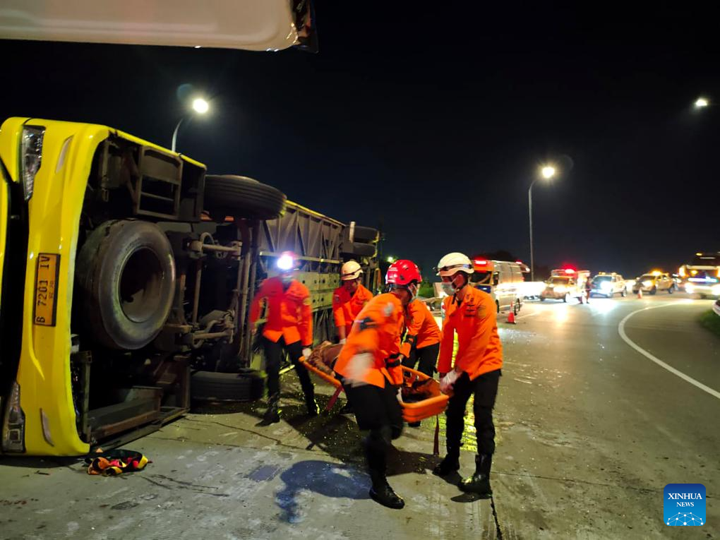 JAKARTA, Dec. 22 (Xinhua) -- Fifteen people were killed and 19 others injured early Monday in a bus accident at the intersection of the Krapyak toll exit in Semarang city, Indonesia's Central Java province, local authorities reported.
