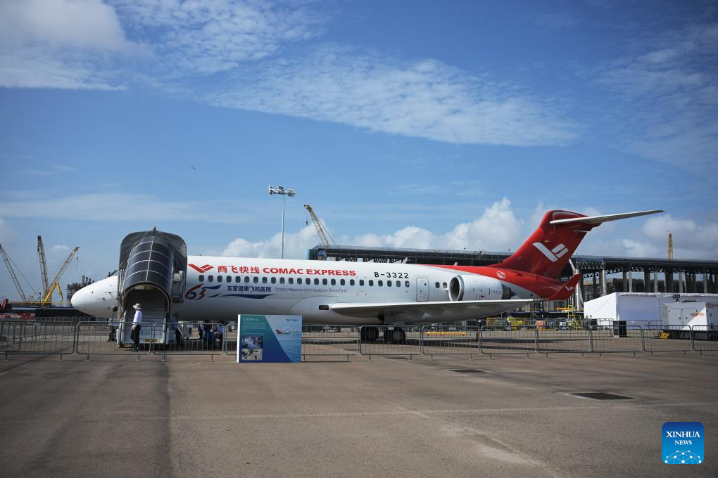A C909 aircraft of the Commercial Aircraft Corporation of China (COMAC) is on display during the 10th Singapore Airshow at Singapore's Changi Exhibition Centre on Feb. 4, 2026. (Photo by Then Chih Wey/Xinhua)