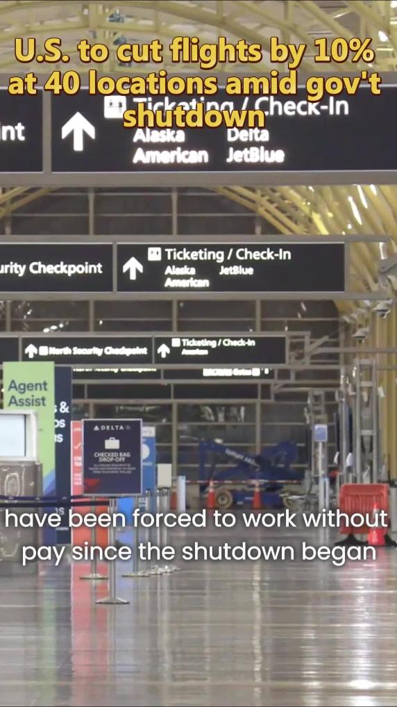 U.S. to cut flights by 10 pct at 40 locations amid gov't shutdown