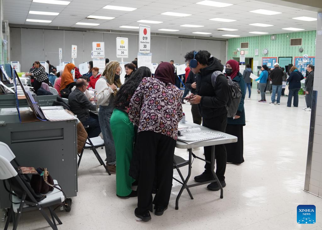 People wait to vote inside a polling station in Queens, New York City, the United States, on Nov. 4, 2025. The New York City mayoral election took place on Tuesday. (Xinhua/Zhang Fengguo)