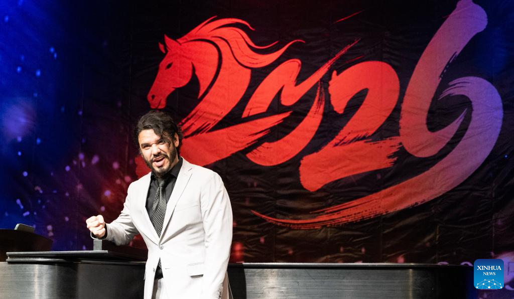 A musician performs at a New Year concert in Mexico City, the capital of Mexico, on Dec. 20, 2025. The concert featuring both traditional Chinese music and works from the global repertoire was open to the public free of charge. (Xinhua/Li Mengxin)