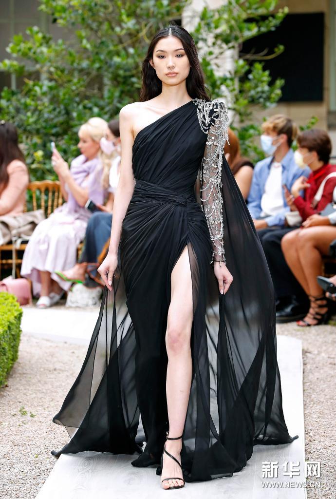 7月7日,模特在法國巴黎高級定制時裝周上展示Zuhair Murad品牌2021/2022秋冬新品。