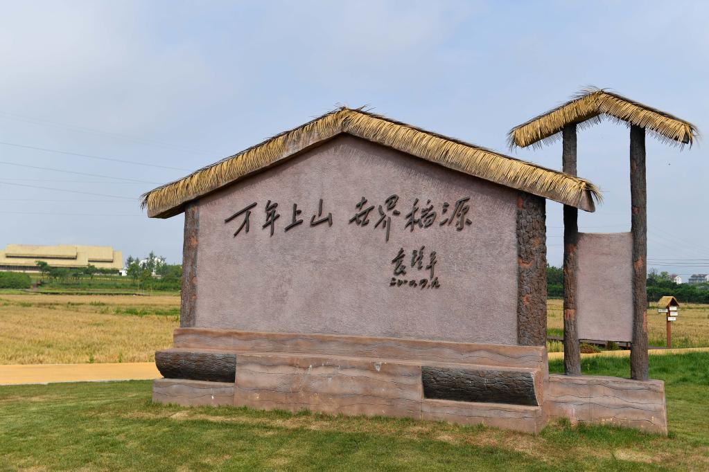 在上山考古遺址公園拍攝的袁隆平院士題詞——“萬年上山 世界稻源”(5月12日攝)。新華社記者 黃宗治 攝