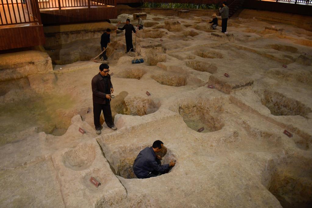 這是上山考古遺址公園發(fā)掘原址上的考古情景再現(xiàn)(5月12日攝)。新華社記者 黃宗治 攝