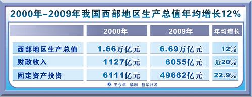 2000年-2009年西部GDP年均增長12%