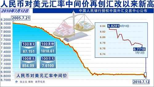 人民幣對美元匯率中間價再創匯改以來