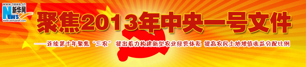 2013年中央一號文件要求,舉全黨全國之力持之以恒強化農業、惠及農村、富裕農民。 [詳細]