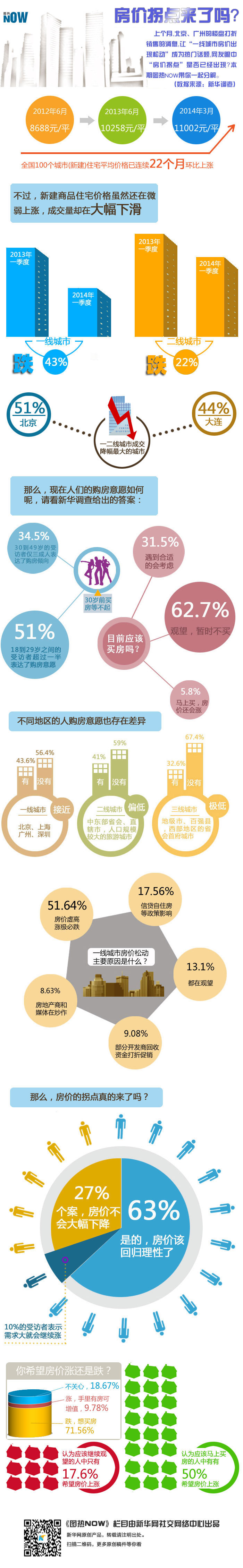 4月1日,中指院發(fā)布2014年3月中國房地產(chǎn)指數(shù)系統(tǒng)百城價格指數(shù)報告,在房價漲幅趨緩的同時,成交量也大幅下滑,上個月,北京、廣州的樓盤打折銷售的消息,讓“一線城市房價出現(xiàn)松動”成為熱門話題,“新華調(diào)查”欄目推出了“一線城市房價是否到了拐點(diǎn)?”的專題調(diào)查,那么,網(wǎng)友眼中“房價拐點(diǎn)”是否已經(jīng)出現(xiàn)?本期圖熱NOW帶你一起分解。