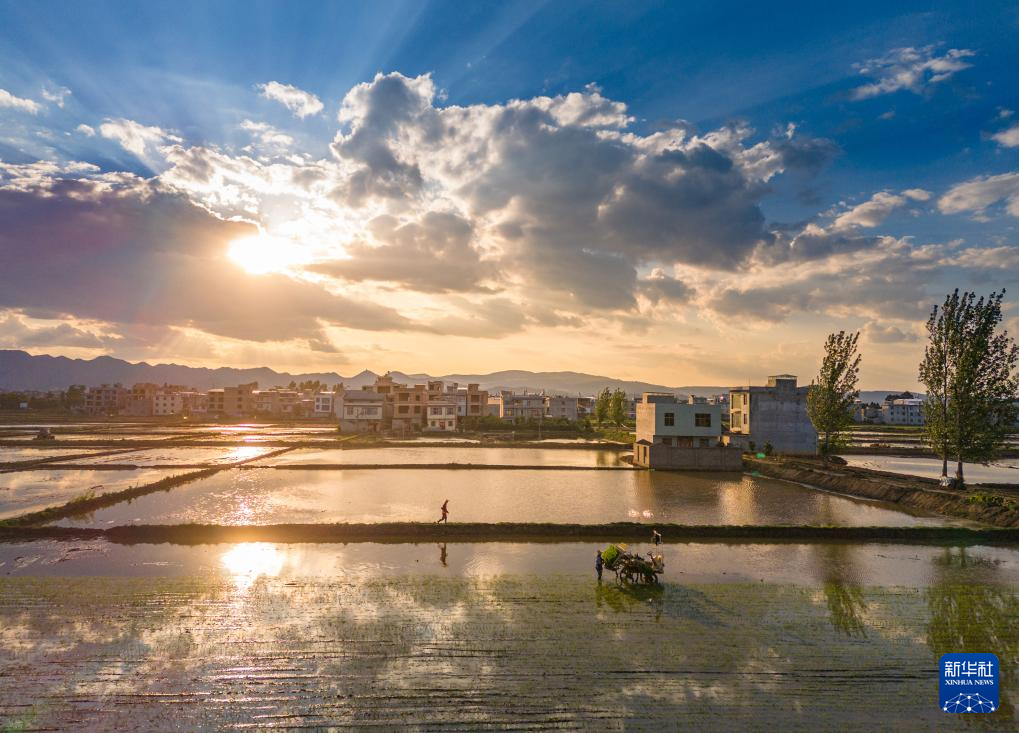 湖南省怀化市通道侗族自治县双江镇马龙村农民在田间耕作。新华社发(粟勇主摄)