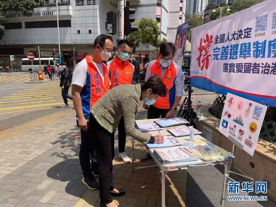 新華社香港3月15日電(記者劉明洋)連日來,“香港各界撐全國人大決定完善選舉制度連線”在全港各區(qū)擺設(shè)街站,收集市民支持全國人大決定的簽名。香港特區(qū)行政長官林鄭月娥15日前往位于港鐵堅尼地城站的街站簽名,支持落實“愛國者治港”原則,并為街站工作人員打氣加油。
