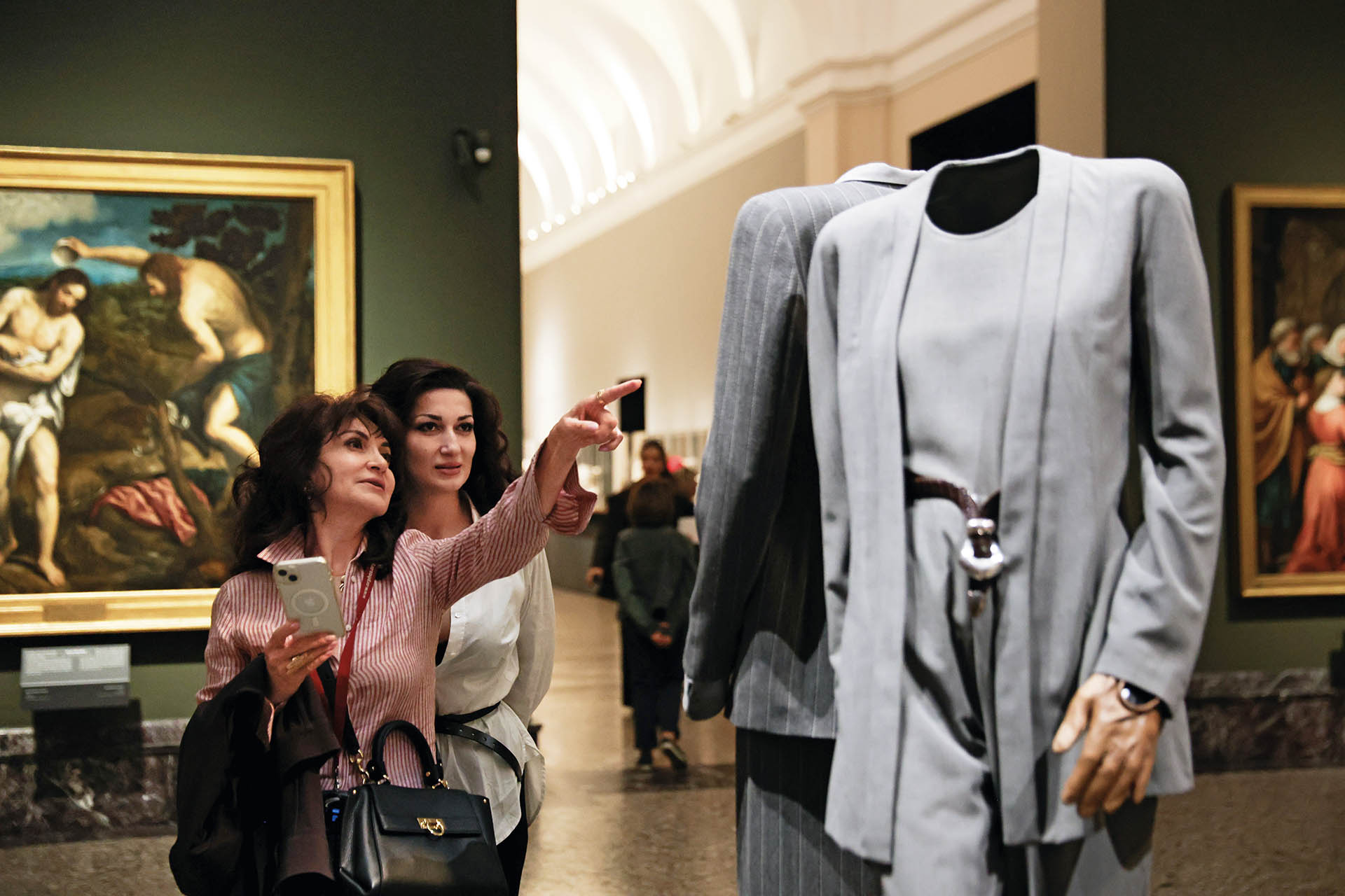 2025 年 9 月 25 日,在意大利米兰布雷拉美术馆,人们参观乔治·阿玛尼经典作品展