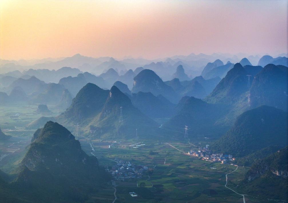 这是群山环绕的桂林市阳朔县兴坪镇乡村(2021年4月25日摄)。