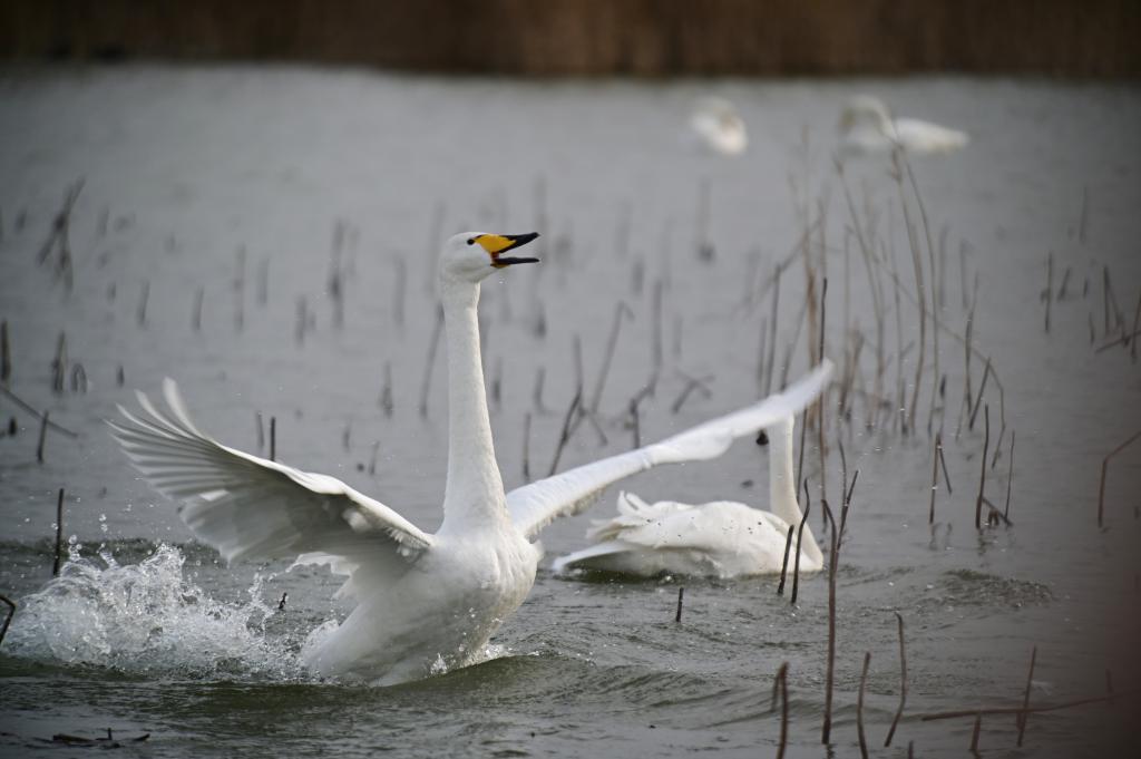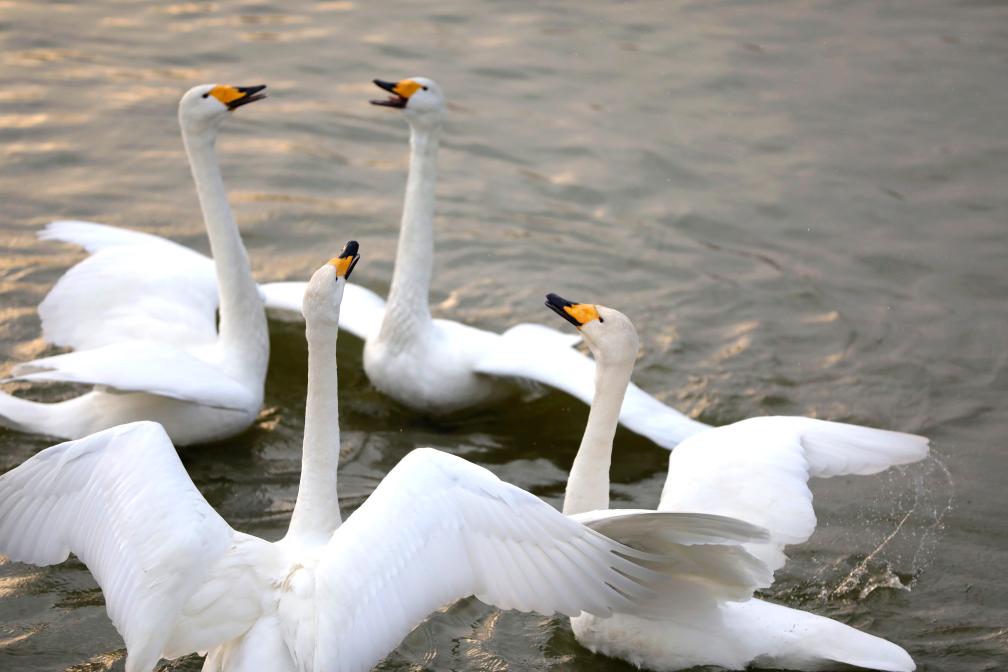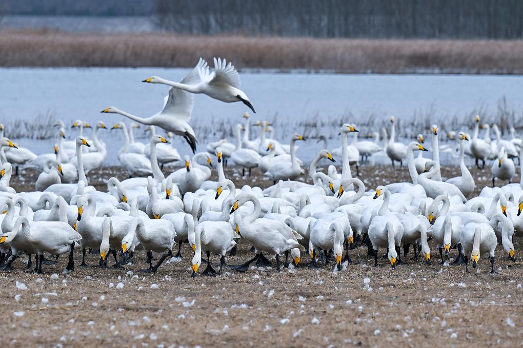 进入冬季,大批白天鹅来到河南省三门峡市黄河湿地栖息越冬。近年来,随着当地不断加强黄河沿岸湿地生态保护工作,白天鹅的数量逐年增加。目前,三门峡黄河岸边40余万亩浅滩湿地已迎来万余只白天鹅。