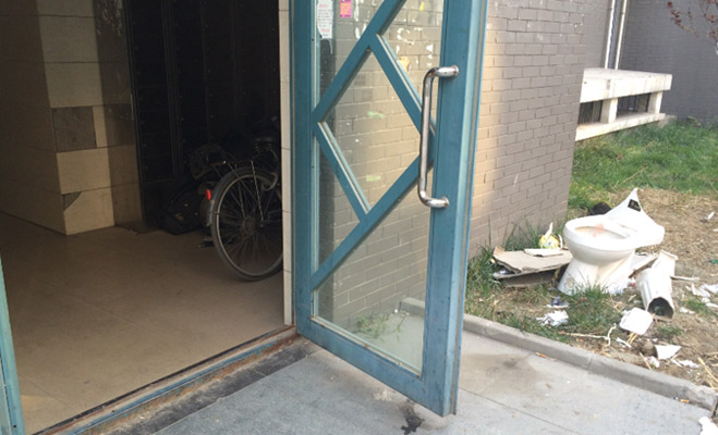 首開石榴派周圍并沒有封閉的圍墻,也沒有任何安保人員,進出小區很方便,同時由于處于道路的交匯處。記者發現,不僅小區東墻有一個大的缺口,而單位樓的門也始終處于開發狀態,記者直接進入小區單元樓,沒遇到任何阻攔。