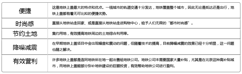 這個概念帶著濃郁的都市氣息。顧名思義,地鐵上蓋的意思就是“在地鐵上蓋房子”,是指依托地鐵軌道系統而建立的一種物業類型,包括商業、住宅和綜合體等多種物業類型。而準確意義上的“地鐵上蓋”,意味著建筑體與地鐵一體建成,在土地出讓階段,即對這一區域的地鐵、建筑體進行整體規劃,在地鐵的建設過程中,同時注重土地的承受力、降噪、減震等方面,以便于物業體的下一步建造。一般地鐵上蓋住宅的情況,會在地鐵停靠站和住宅之間建造一層車庫,達到減震、降噪的目的。