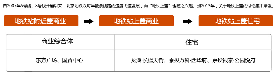 毫無疑問,地鐵上蓋這種物業形態是伴隨著城市里的軌道交通誕生的。在香港、東京、紐約等國際大都市中,這種物業形態已經比較成熟。在東京,100個日營業額在10億日元以上規模的綜合性商業中心有95個和地鐵發生關系,軌道交通遍布周圍;在香港,60%以上的購物中心屬于地鐵上蓋物業。在發展早期,商業綜合體是地鐵上蓋一直寵愛的形式,而近年來,直接在地鐵停靠站上建設“空中住宅”也成為主流形式之一。未來,北京地鐵6號線、8號線和9號線的車輛段頂部都將進行這樣的開發。