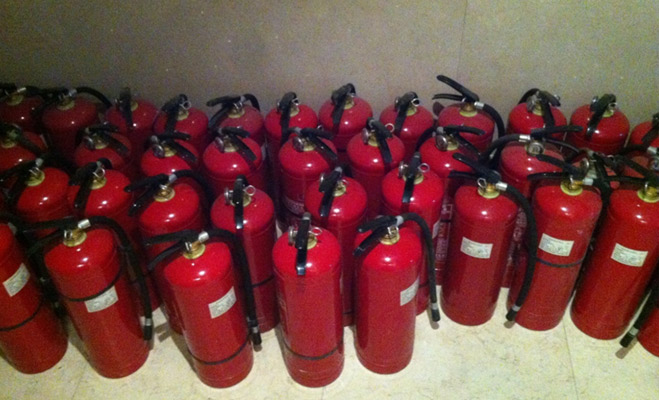 最后當記者按照小區業主說的下到了地下一層,發現門口堆滿了滅火器,而后記者從地下車庫離開小區,地下車庫的保安也沒有阻止記者離開,仿佛司空見慣一般。