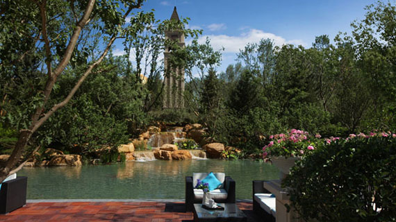 林語墅景觀是另外一大特色,花叢、溪畔、用黃蠟石堆積的假山既有西方皇家的規(guī)制,又體現(xiàn)東方禪境園林的意蘊(yùn)。記者在現(xiàn)場(chǎng)看到項(xiàng)目?jī)?nèi)還配有3000平的高爾夫推桿練習(xí)場(chǎng)。置身其外,卻也能體會(huì)居者頂級(jí)品味。