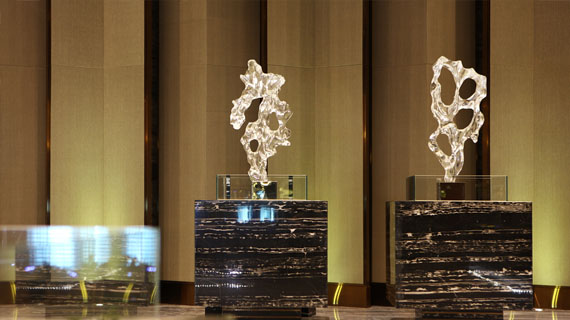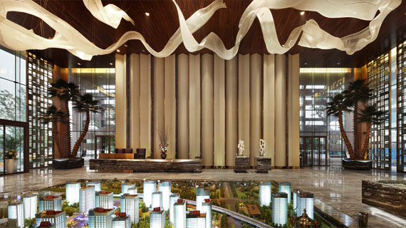 該項目還突破了傳統(tǒng)的單一大堂配置,運用“多功能三進式大堂”設計,從社區(qū)、首層到地下,層層遞進。其中社區(qū)門口大堂擁有400平方米,9米挑高,同時設有高科技門禁裝置,保證了安全性和私密性;7米挑高的室內(nèi)入戶大堂專配24小時私屬管家;地下的車庫大堂更是使用全石材鋪裝。