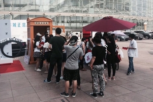 西安路夢想話吧前,"道夢"隊伍自覺排列