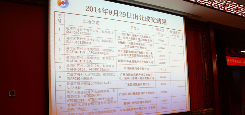 在前兩宗地均底價成交后,廣鋼的第三宗地——荔灣區(qū)芳村大道南以西,鶴洞路以南AF040129、AF040130地塊終于打破了一家舉牌的局面,在幾輪并不激烈的交替出牌后,18號北大資源力壓16號,以13.7億拿下地塊。