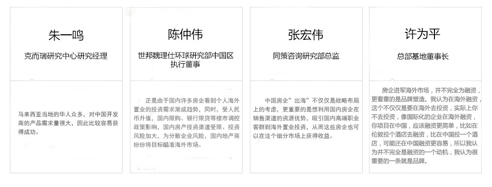 碧桂園目前在馬來西亞建設中的項目有3個,預計今年都會陸續推出市場,馬來西亞項目是碧桂園海外業務跨出的第一步。目前海外市場正在摸索中,公司也沒有規定海外具體銷售額,而是給他自由的嘗試??偛媚蟊硎?,海外市場是有中長期規劃,近期要成立一個海外事業部,專門研究海外市場,除了馬來西亞,還可能…… [詳細]