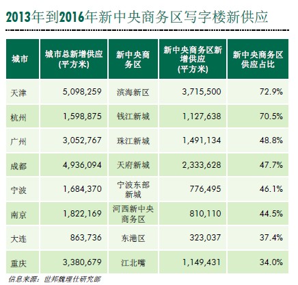 杭州新興中央商務區錢江新城,四年內的寫字樓供應量將達到112.8萬平方米,占全市份額將超過七成;寧波新興中央商務區東部新城,四年內的寫字樓供應量將達到77.6萬平方米,預計將占到全市總量的46.1%。。