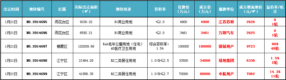 2015年1月南京成交土地信息
