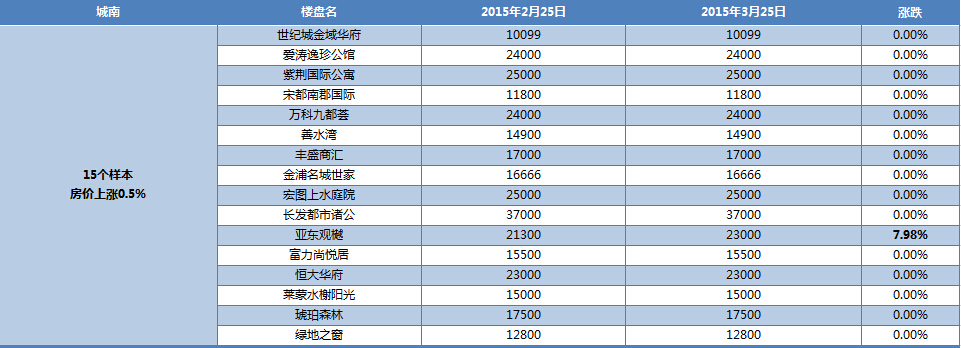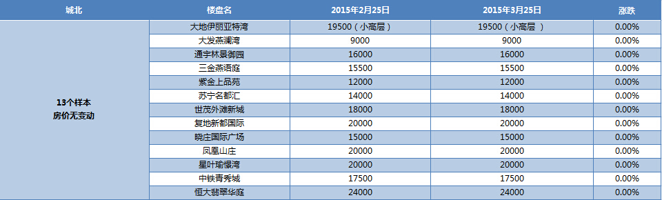 新華房產對南京八大板塊在售的80余家樓盤進行了房價漲跌統計,結果發現,3月,南京房價環比微漲0.174%。 [詳細]