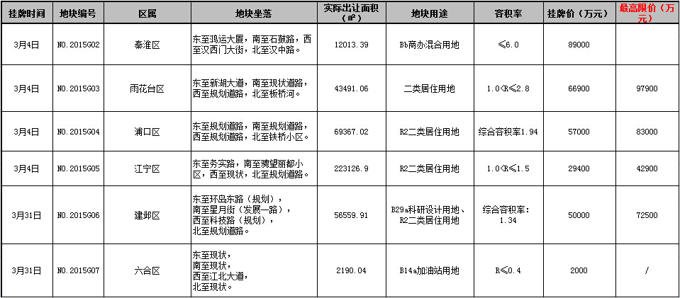 3月4日早上,南京市國土資源局時隔一周之后再度發布公告,共有4幅地塊掛牌上市,其中3幅為二類居住用地,分布在城南、江寧、江北、城中四個板塊。四幅地塊將在4月10日下午14:25分進行公開拍賣. …[詳細]