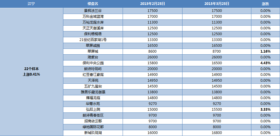城東(--) 城北(--) 城中(--) 城南(↑0.5%) 仙林(↑0.39%) 河西(--) 江寧(↑0.41%) 江北(↑0.093%)