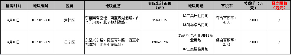 2015年4月南京出讓土地信息