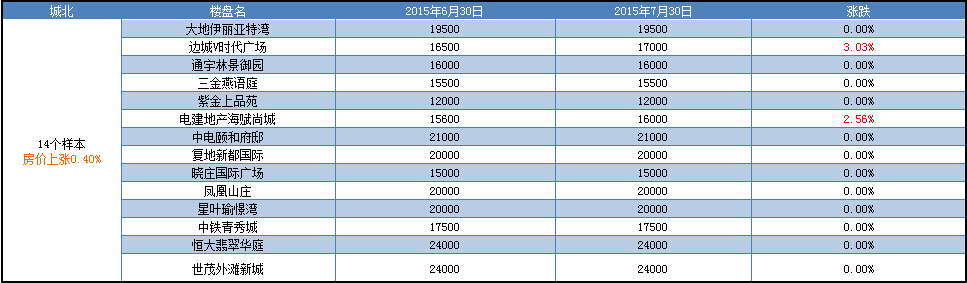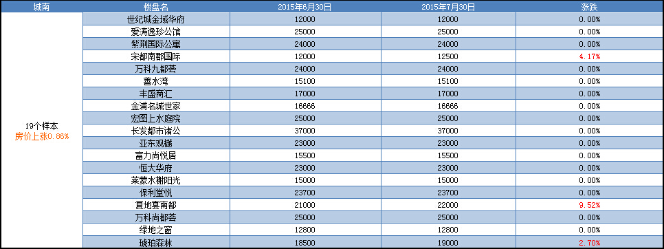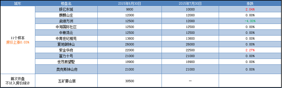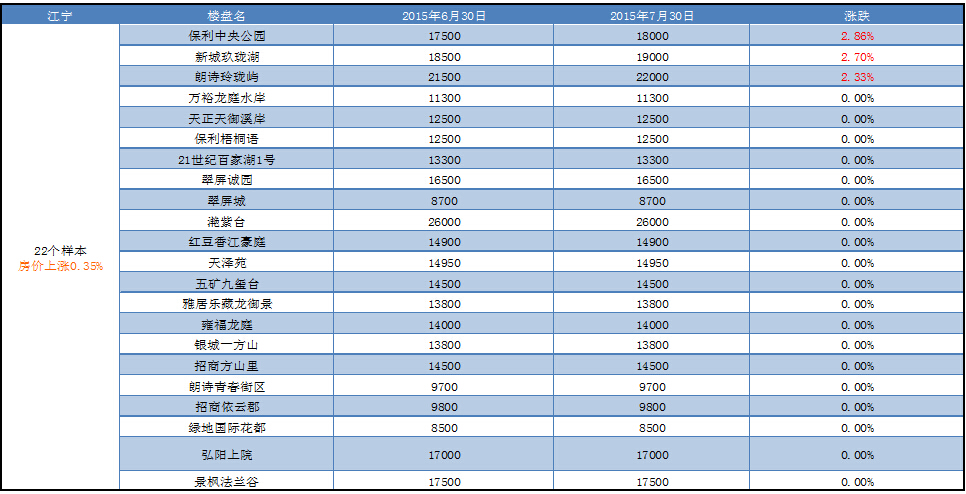 城東(↑0.03%) 城北(↑0.40%) 城中(↑0.51%) 城南(↑0.86%) 仙林(↑1.09%) 河西(——) 江寧(↑0.35%) 江北(↑1.76%)