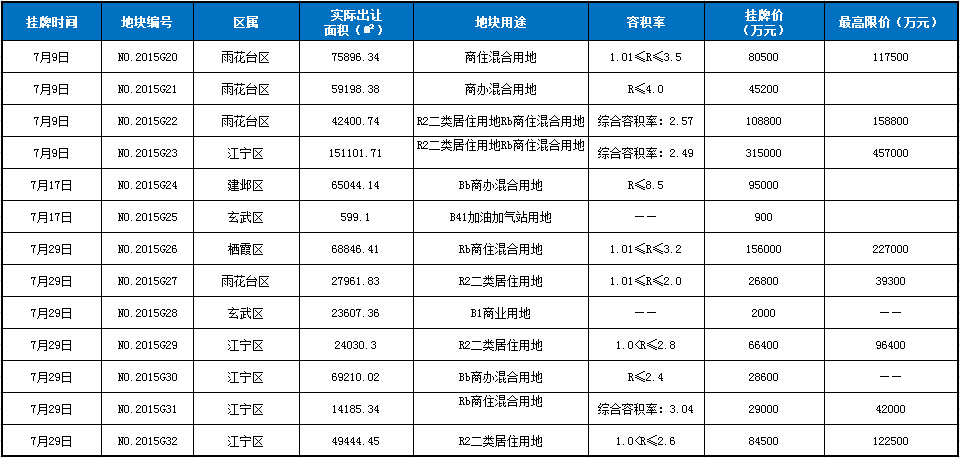 7月南京國土局入賬26.7億元 土地供應面積創三年來同期之最