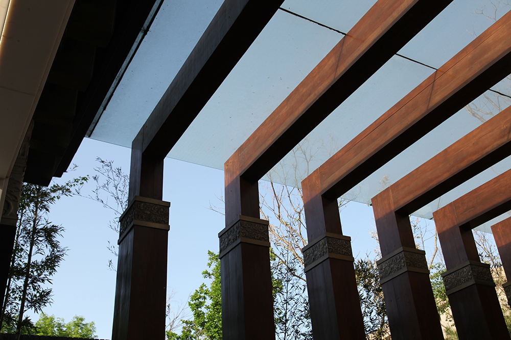 泰禾“院子系”產品在建筑形態與園林景觀皆力求融入中國文化淵源。如中國院子重要景觀“留云山房”,取意唐代王右丞《秋居山瞑》之“明月松間照,清泉石上流”優美意境,營造出“山院水園層疊相抱,庭臺水景仙境瓊游”的院落美學空間。