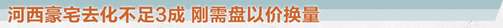 房價(jià)飛漲的河西板塊現(xiàn)在終于冷靜了。買不到的“神盤”——海峽城現(xiàn)如今讓購房者有了挑選的余地;純新盤五礦崇文金城即便以低于預(yù)期1500元/平方米的價(jià)格入市,去化也僅有8成;豪宅代表華潤悅府門前更是冷清,開盤一個(gè)半月去化不足3成。
