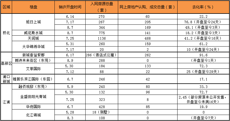 根據(jù)網(wǎng)上房地產(chǎn)的統(tǒng)計(jì)數(shù)據(jù)顯示,六合片區(qū)內(nèi)樓盤的實(shí)際銷量呈現(xiàn)出了兩極分化狀,當(dāng)?shù)亍褒堫^”企業(yè)榮盛旗下各盤依舊不愁賣,但除此之外,約計(jì)八成情況不容樂觀,超過一個(gè)月的累計(jì)去化率不足四成。更有一盤,6月底領(lǐng)到的預(yù)售房源,至今無一套房源進(jìn)賬。