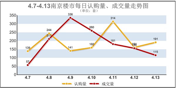 數據顯示,“銀四”第二周(4月7日-4月13日),南京樓市迎來11盤、近1900套新增商品房源的供應,庫存量也直線躥升至3.6萬套水平。銷售方面,截止4月13日晚間10點整,網上房地產數據顯示,上周南京新增商品房共計認購1350套,成交1316套,環比上一個統計周期分別上漲了1.7%、11.7%。日均認購193套、成交188套。業內人士據此推斷,市場已進入年度強銷期,且由于青奧會停工的影響,銷售強度將不斷提高。…[詳細]