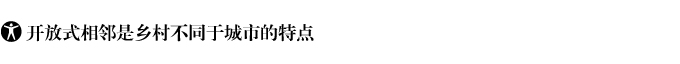 開放式相鄰是鄉村不同于城市的特點,就像商務寫字樓是一種只屬于城市的產品一樣,開放式相鄰正是鄉村延續至今的生命力所在,并且現代城市的結構本源也是依據鄉村開放式相鄰的模型,即大比例的公共空間+大規模的私人空間。