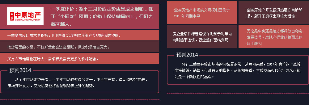 龍頭房企年報普遍呈現三大特征:2013年業績大幅增長,2014年銷售目標則相對謹慎;毛利率集體下降,但凈資產收益率等指標穩定增長;去存貨、快周轉,成為應對行業調整期的統一動作。在有效控制銷售成本、融資成本的情況下,也不排除通過價格策略的調整,搶收2014。