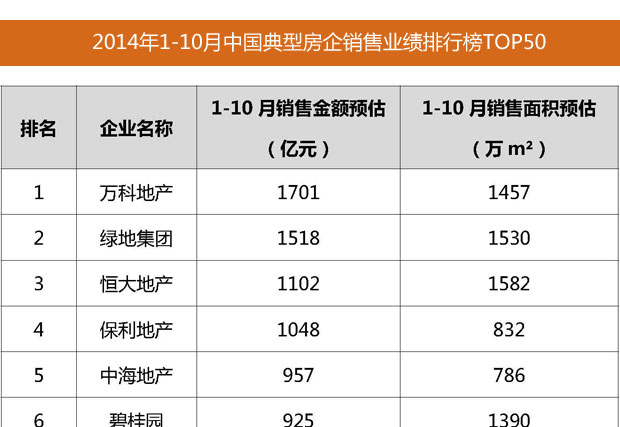 房企業績榜 新華房產“房企業績榜”是新華網聯合房地產咨詢服務機構億翰智庫,結合中國大陸以房產開發為主營業務的企業經營數據(住宅),獨家發布銷售業績排行榜(TOP 50)。本欄目每月首周更新,時間跨度為從當年初到發布月(不含)止,所選取物業屬性主要針對可售型住宅物業,數據來源億翰智庫數據及各企業公報等。