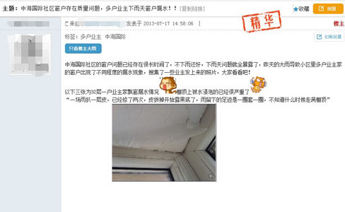 近日,位于北京市昌平區(qū)沙河鎮(zhèn)的別墅項(xiàng)目中海尚湖世家眾多二期業(yè)主反映,在交房時(shí)發(fā)現(xiàn)項(xiàng)目存在諸多嚴(yán)重的質(zhì)量問(wèn)題。由于開(kāi)發(fā)商方面態(tài)度蠻橫而交涉未果,引發(fā)九成以上業(yè)主不滿(mǎn),欲進(jìn)行維權(quán)討回公道。[詳細(xì)] |
