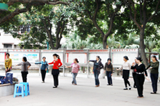 居民在社區(qū)公園內(nèi)排練