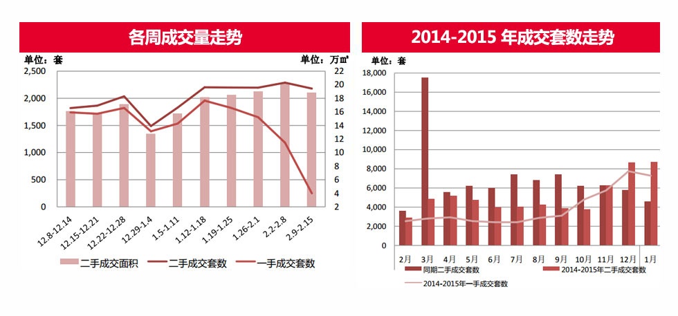 本周(2.9-2.15)深圳二手住宅成交套數繼續超2000套大關,但較前四周有小幅下降。本周(2.9-2.15)二手樓成交套數下跌4.76%、成交面積下跌7.38%。