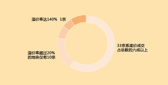 武漢上半年出讓的地塊中,有33宗系底價成交,占總數的六成以上;溢價率超過20%的地塊僅有10宗,最高的為沌口的一宗地塊,溢價率達140%。而進入4月以后,歷次土拍無一不是"火速底價成交"。[詳情點擊]