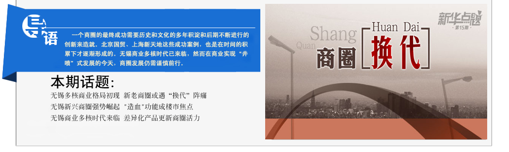近年來,隨著城市化進程的加快推進,舊商圈的升級和新商圈的興起正在輪番上演。目前無錫商圈呈現出遍地開花的景象,然而它們命運卻各有不同,有的逐漸沒落、有的寶刀未老、有的嶄露頭角……無錫商圈正進入一個“新時代”。