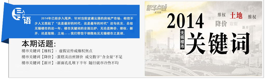2014無(wú)錫樓市在平穩(wěn)中繼續(xù)發(fā)展,但樓市維權(quán)也成為不可避開(kāi)的話題。在降價(jià)潮的大環(huán)境下,業(yè)主與開(kāi)發(fā)商的矛盾尤為明顯,稍有溝通不暢極易引發(fā)集體維權(quán)事件。據(jù)消協(xié)相關(guān)負(fù)責(zé)人透露,相較于2013年,2014年無(wú)錫樓市維權(quán)事件比例有所上升。